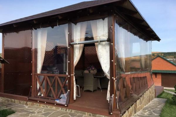 Конечно! Стандартный цвет, подходящий большинству беседок, террас и веранд — коричневый. Но если вы хотите внести разнообразие и оформить беседку в индивидуальном стиле, мы предложим белую, светло-бежевую и любую другую цветную окантовку.